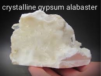 b) Alabaster Another type of gypsum rock is alabaster, also called gypsum marble or white marble. It is fine-grained, compact, smooth, greasy-like, colorless,